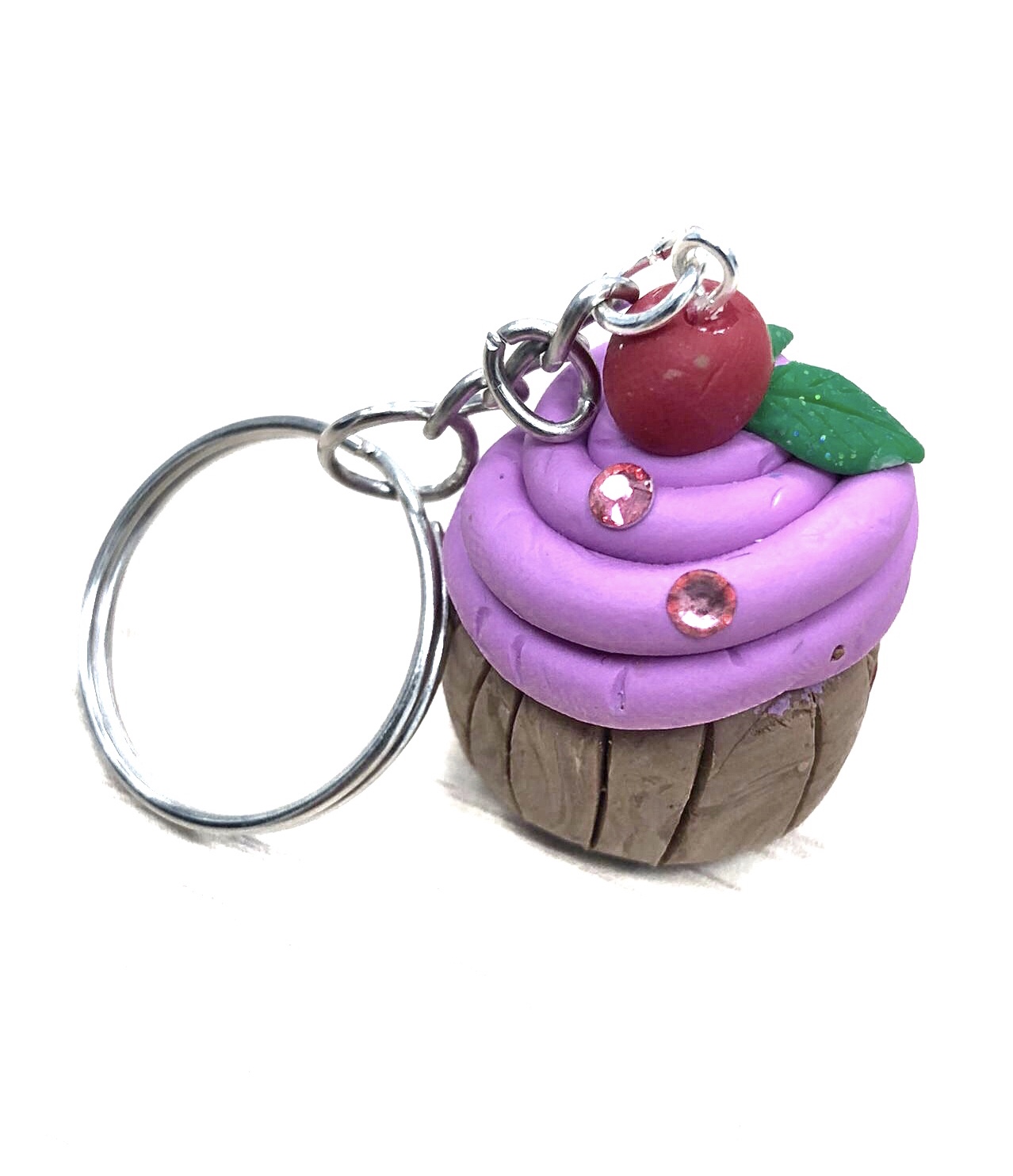 Este producto se trata de un llavero con una figurita que representa un pastelito. En las imágenes solo aparece uno de los ejemplos que se pueden encontrar en esta categoría de productos. El llavero que les puede llegar puede ser de un color diferente ya que son artesanales y cada uno de los productos son diferentes y únicos.